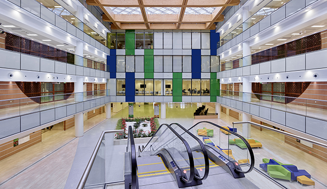The lighting solution boasts of over 1KM of recessed SLOTLIGHTII providing guidance in corridors of the hospital with a continuous light band facilitating orientation for the patients and staff working long hours. The lengths of SLOTLIGHTII worked effortlessly with the architectural plan requirements. Parallel light lines above the conference and meeting room areas offer excellent visibility during meetings and add a special design feature to the rooms. PANOS Q supports the homogeneous light distribution throughout the hospital.