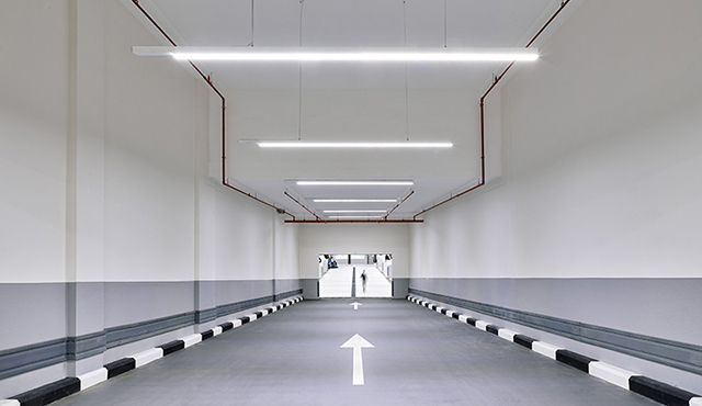 The emergency lighting was also upgraded to state-of-the-art standards. RESCLITE emergency luminaires with high-power LEDs are fitted on trunking. Thanks to maximum efficiency and perfect light distribution, a few luminaires are enough to provide emergency lighting in conformity with relevant standards, even when they are installed on high ceilings. And yet the powerful LED package requires a minimum of energy. The luminaire's installed load is only 5 W, in non-maintained mode it is even as low as 1.5 W.
