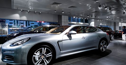 In the course of day-to-day work in office applications, it is quite normal to encounter a huge variety of different visual stimuli. This means that achieving the right lighting concept is crucial. Light affects almost all vital processes in the human body and also has an impact on our performance, health, safety and sense of wellbeing. The office study conducted by Zumtobel with Frauenhofer IAO found that people clearly prefer different light levels and colour temperatures. The research also demonstrated that direct/indirect lighting and individual controls are important for many office users. The Porsche offices located within the showroom area take all of these factors into account with one single luminaire. The OPURA freestanding luminaire ensures uniform illumination of the task areas whilst also giving employees the option to easily adjust the light levels. The asymmetric indirect light distribution provides optimum visual conditions by directing light onto the working plane and delivering uniform illumination of the ceiling.