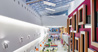 Ušće‘s architecture is based on strong contrasts. The huge signal red façade first attracts visitors, while the clear, peaceful and light interior makes them want to stay there. Gentle, natural tones please the eye and form a neutral space for shops and attractions. ‚Our task was to create a setting for different types of shops. So we worked with white a lot – to make sure that all the attention is directed to the products offered by the shopping and food areas‘, says Gerardo Sannella about the design concept.