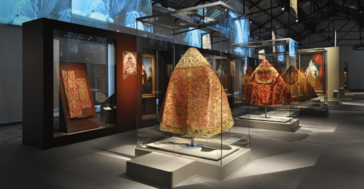 However, energy efficiency is not the only issue important to exhibition buildings. Each museum has a different concept, has different lighting requirements. Museums presenting permanent exhibitions have other needs than buildings with temporary exhibitions. Based on its many years of application know-how, Zumtobel - jointly with international architects and lighting designers - develops innovative lighting systems that allow to adjust brightness and colour temperatures to the special requirements of any exhibition at all times. A good example is Zumtobel's collaboration with the renowned David Chipperfield architects studio, for instance; where a spotlight range has been developed that focuses on what is essential, therefore ensuring perfect illumination of museums, art galleries and exhibition areas. Owing to their special properties, these LED spotlights make sure that paintings are not damaged or faded by harmful UV or IR radiation. Annoying reflections are prevented by an anti-glare panel integrated in the spotlight design. "I have always been interested in reducing architecture to a very simple, basic idiom and in emphasising space, the materials used, and light", comments David Chipperfield on his ideas about light and art. This is shown very impressively in the Museo del Tessuto in Italy. For reasons of conservation, the valuable medieval exhibits of textile art and textile technology must not be exposed to daylight. In the exhibitions areas, ambient lighting has therefore been reduced to a minimum. Here, the lighting system by Zumtobel allows to create gentle accents, producing a unique, emotional atmosphere.